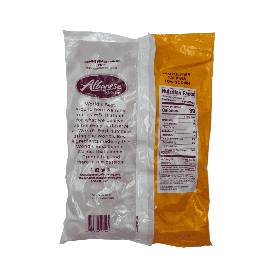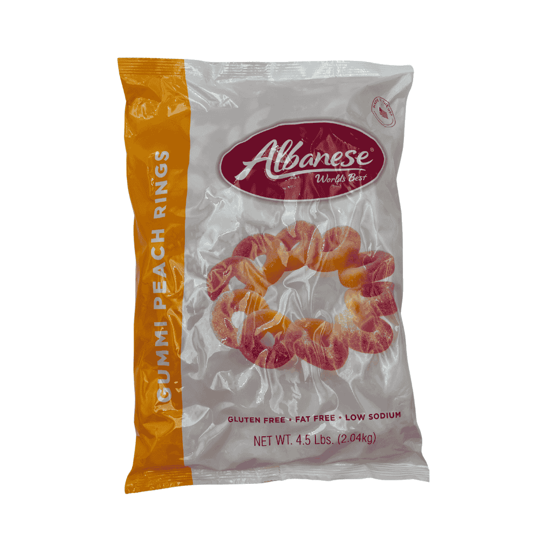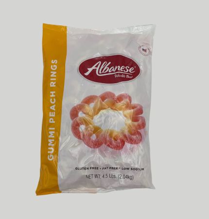 gomas en forma de aro, sabor durazno. Peso de la bolsa 4.5 lb (2.04 kg)
