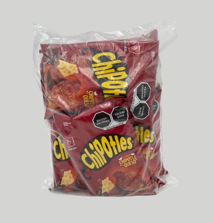 botana de maiz sabor chipotle y queso. Paquete de 8 piezas de 52 g. peso del paquete 416 g (14.67 oz)
