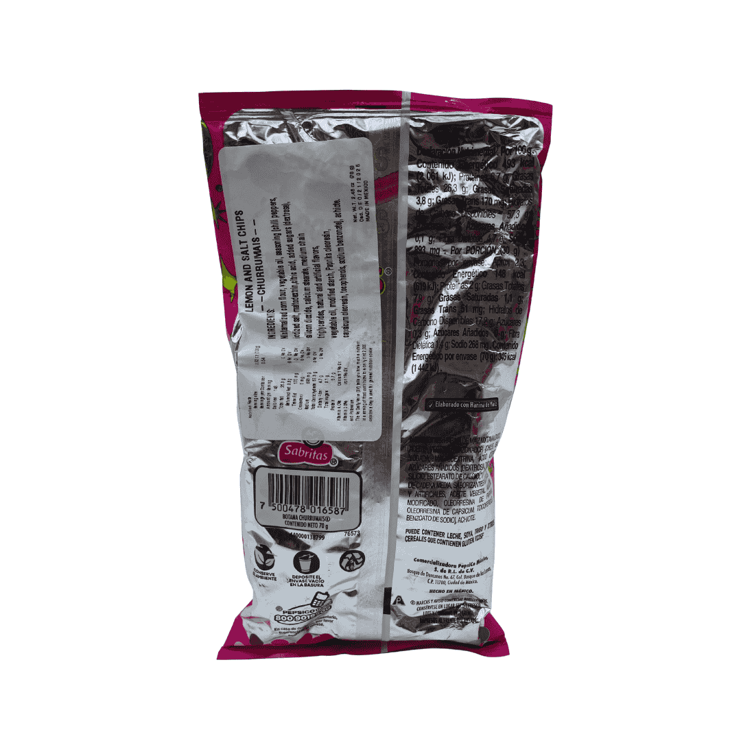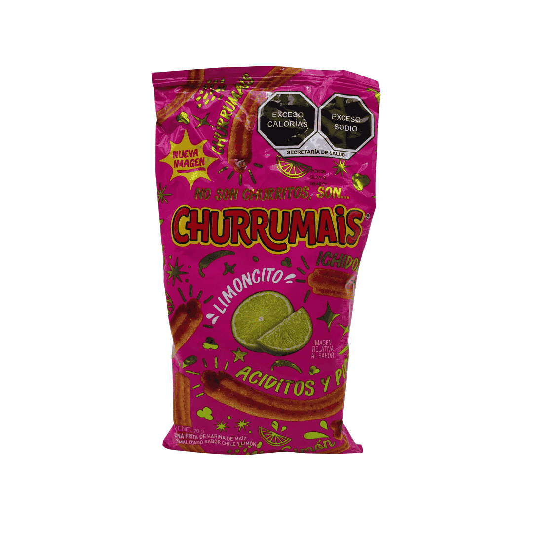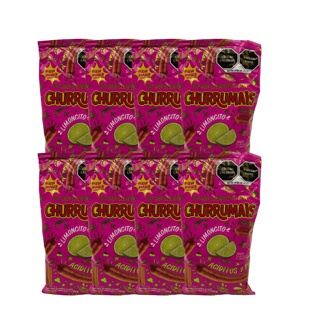 botana de maiz sabor chile y limon. Paquete de 8 piezas de 70 g. peso del paquete 560 g (19.75 oz)