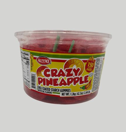 aros de gomas con chile sabor pina. Bote de 1.2 kg (2.64 lb) 150 piezas por bote