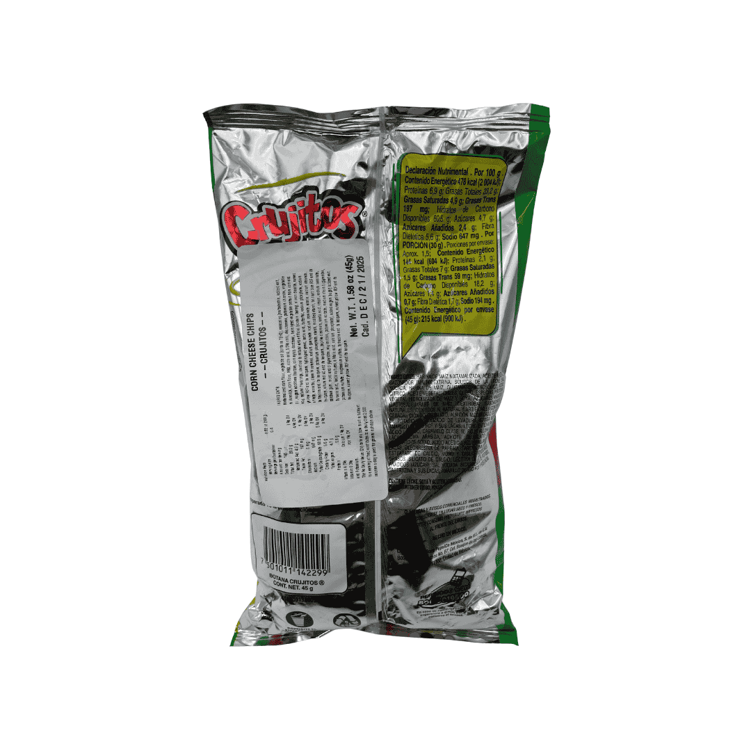 botana de harina maiz sabor queso con chile. Paquete de 8 piezas de 42 g. peso del paquete 11.85 oz (336 g)