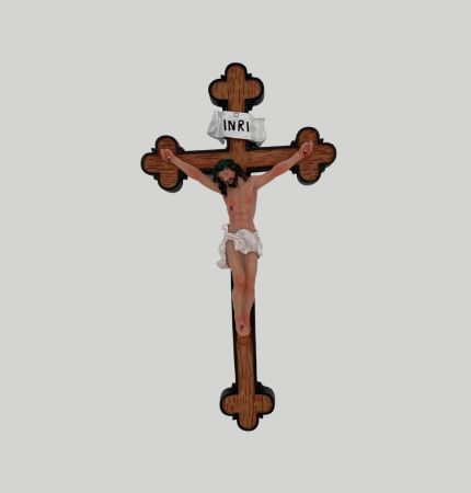 imagen de material resina. Jesús en la cruz. Tamaño 12 pulgadas de alto por 6 de ancho. peso 10 oz