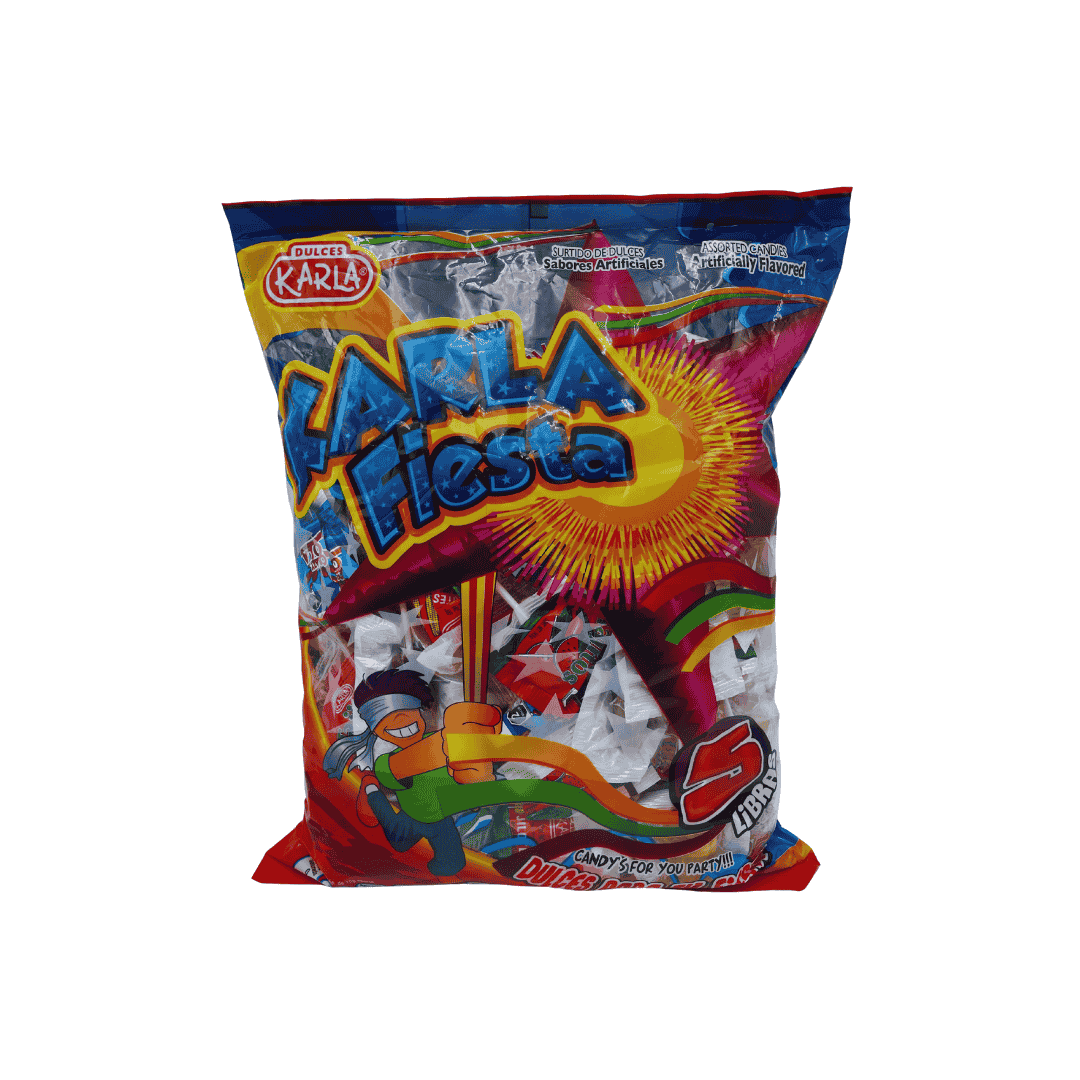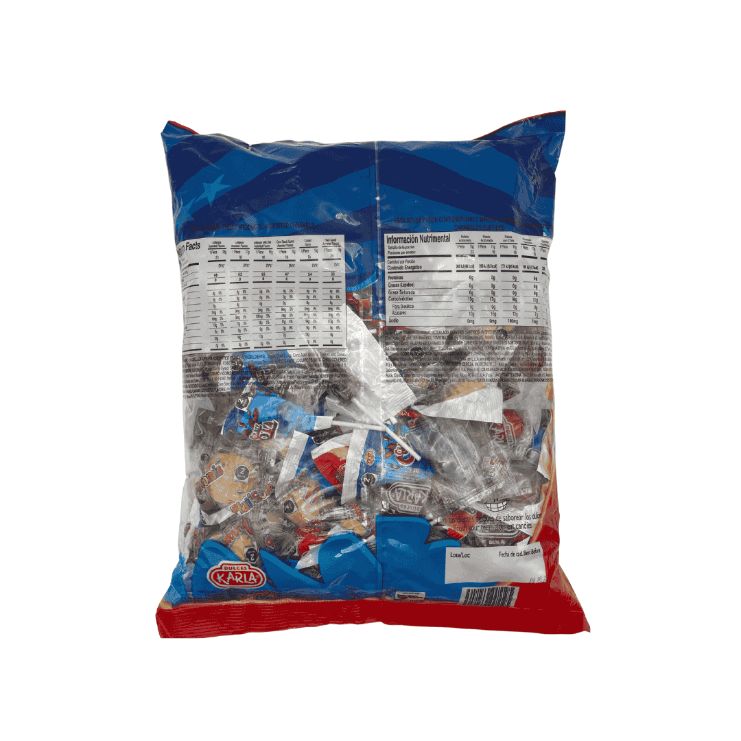 mezcla de dulces surtidos, paletas y gomas sin chile. Bolsa de 5 lb (80 oz)