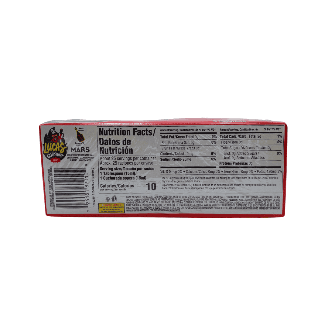 dulce liquido enchilado sabor chamoy. Paquete de 10 piezas de 1.26 oz. peso del paquete 360 g (12.6 oz)