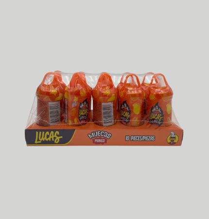 paleta de caramelo sabor mango con chile en polvo. Paquete de 10 piezas de 0.88 oz (25 g). Peso del paquete 250 g (8.8 oz)