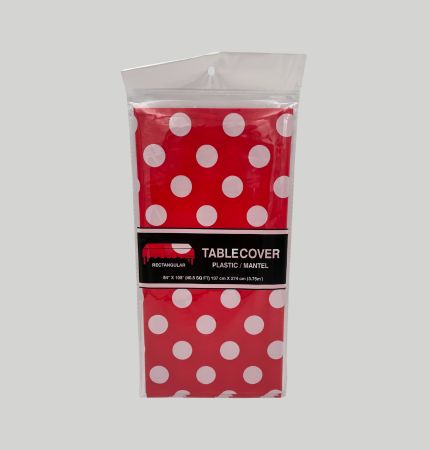 MANTEL RECTANGULAR ROJO CON PUNTOS BLANCOS