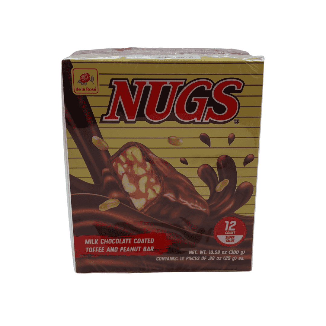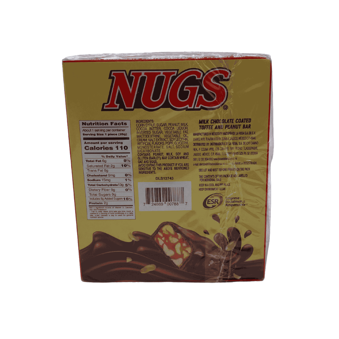 caramelo de leche con cacahuate cubierto de chocolate. Paquete de 12 piezas de 28 g. peso del paquete 340 g (12 oz )