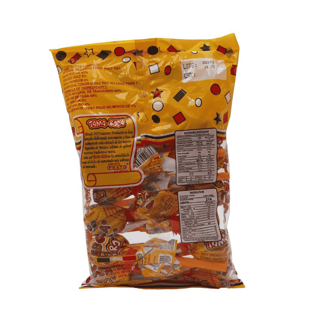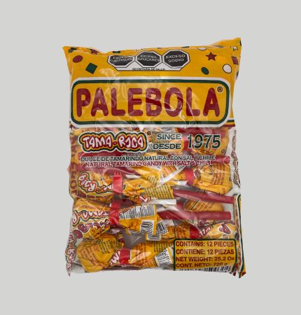 paleta de dulce de tamarindo natural con sal y chile. Paquete de 12 piezas de 60 g cada una. Peso del paquete 720 g (25.2 oz )