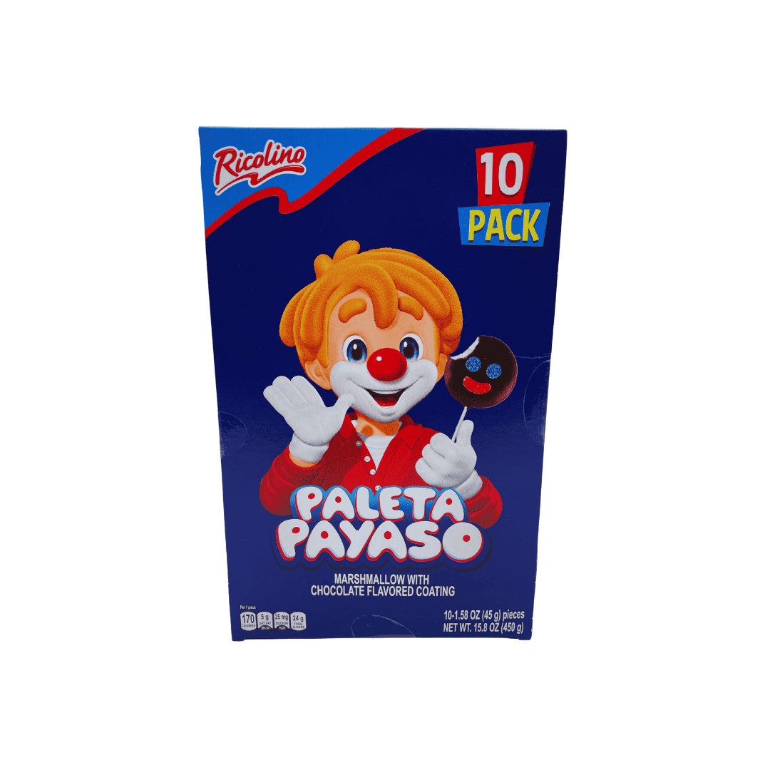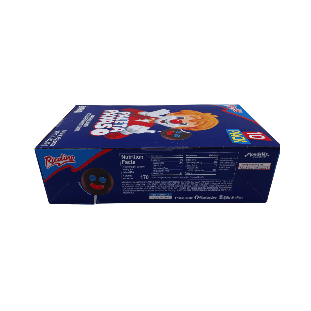 paleta de malvavisco con cobertura sabor chocolate y gomitas. Paquete de 10 piezas de 45 g cada una. Peso del paquete 450 g (15.8 oz)
