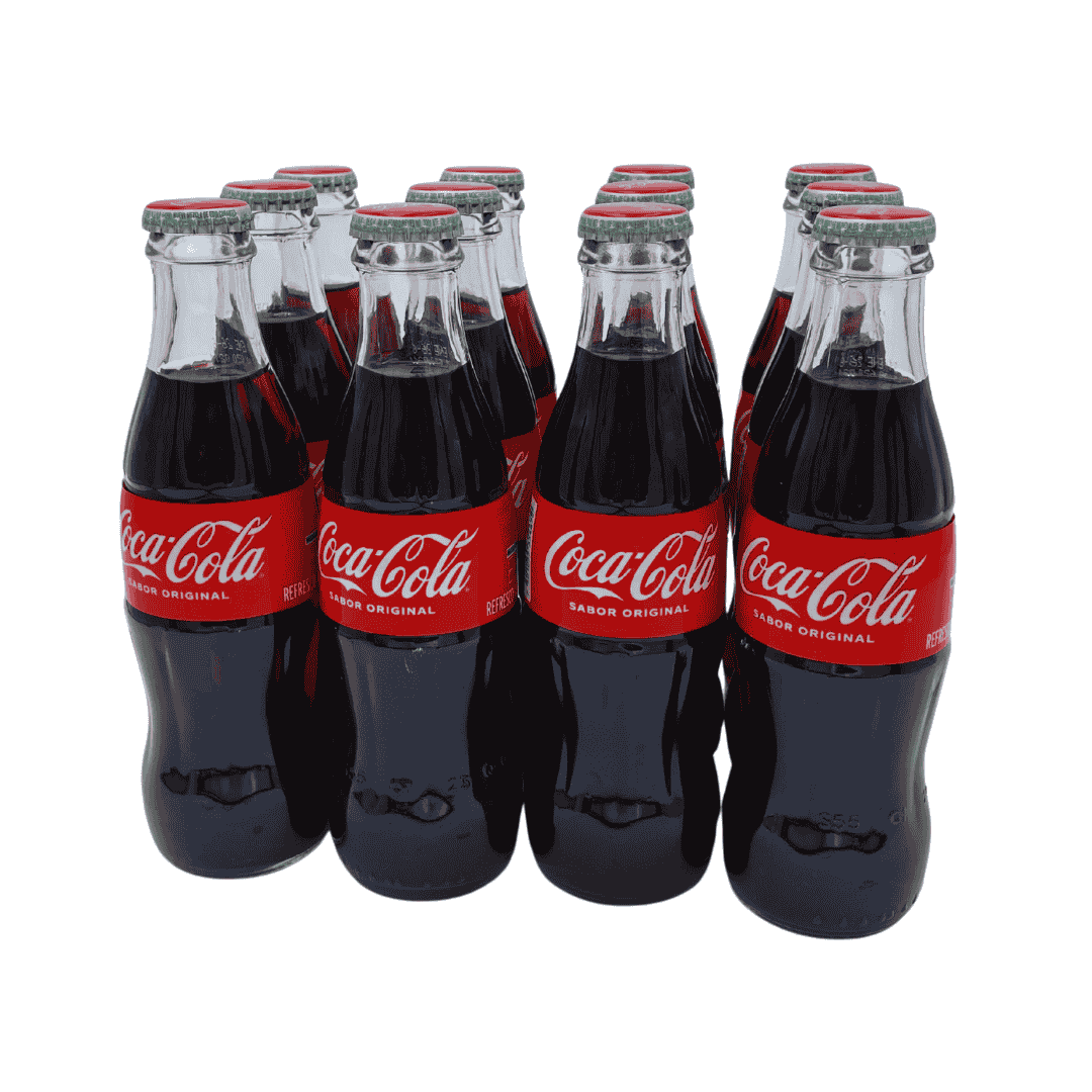 Bebida mini coca cola botella de vidrio, paquete de 12 piezas de 8 oz cada una. Peso del paquete 3 LB