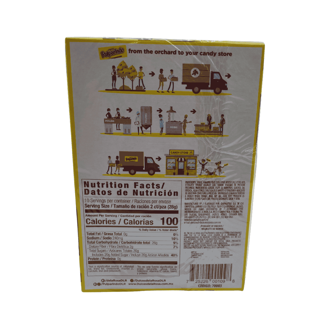 barrita dulce de tamarindo salado y enchilado con sabor a tamarindo original. Paquete de 20 piezas de 1 solo sabor. Peso del paquete 280 g (10 oz)