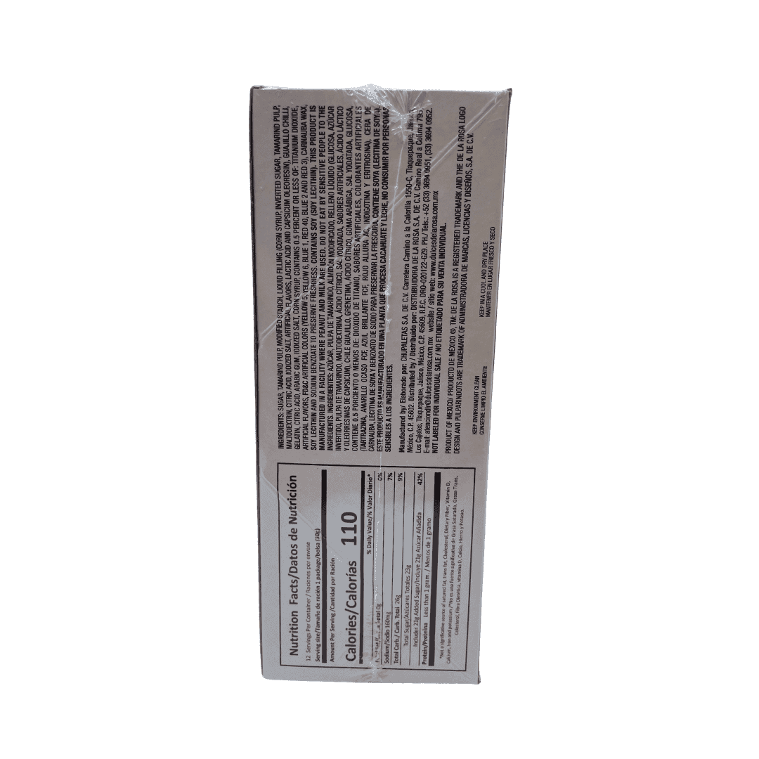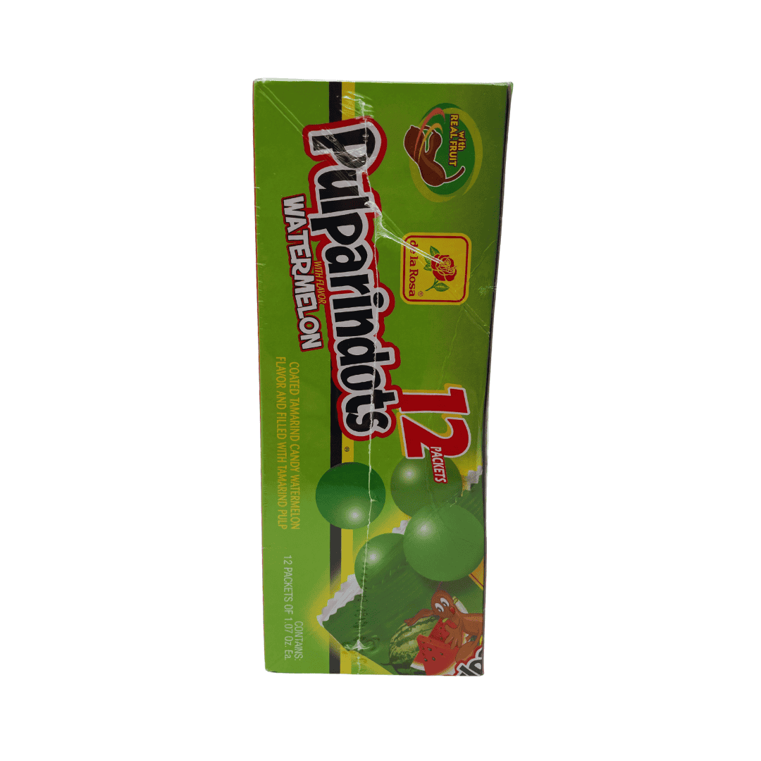 dulce de tamarindo confitado con relleno de pulpa de tamarindo. Sabor sandia. Paquete con 12 sobres de 30 g (1.07 oz). Peso del paquete 360 g. (12.8 oz)