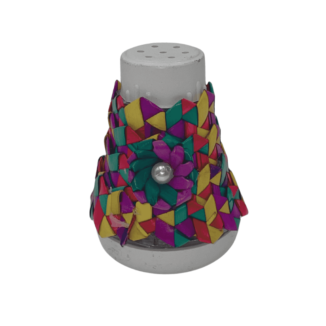 salero de plastico, con decoracion en material de palma, 1.5 pulgadas de alto