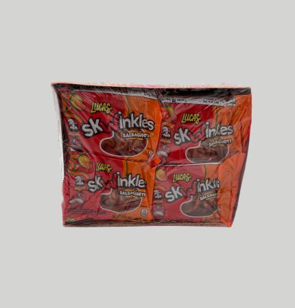 dulce enchilado en tiras sabor mango y salsa sabor tamarindo. Contenido 12 sobres de 0.85 oz (24 g). peso del paquete 10.2 oz (288 g)